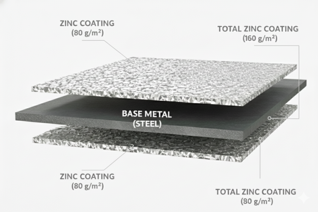 ورق گالوانیزه یکی از پرکاربردترین انواع ورقهای فولادی است که با لایهای از روی (Zinc) پوشش داده شده تا مقاومت استثنایی در برابر زنگزدگی و خوردگی فراهم کند. این ورقها در ضخامتها و کوتینگهای متنوع (80 تا 275 گرم بر متر مربع، با استاندارد 100) تولید میشوند. گرید DX51D به عنوان گرید استاندارد، کیفیت و شکلپذیری مطلوبی ارائه میدهد، در حالی که گریدهای DX53D، DX54D و DX56D با سطح چربتر، برای کاربردهایی با نیاز به فرمپذیری بالا ایدهآل هستند.